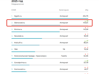 «Сибирское Агентство Новостей» заняло вторую строчку рейтинга «Медиалогии» за 2025 год