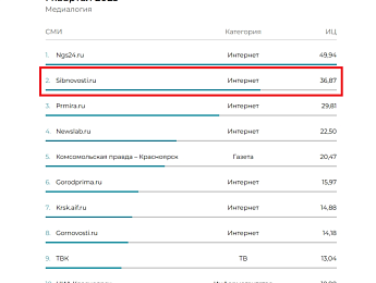 «Сибирское Агентство Новостей» вошло в ТОР-3 самых цитируемых СМИ Красноярского края за I квартал 2025 год