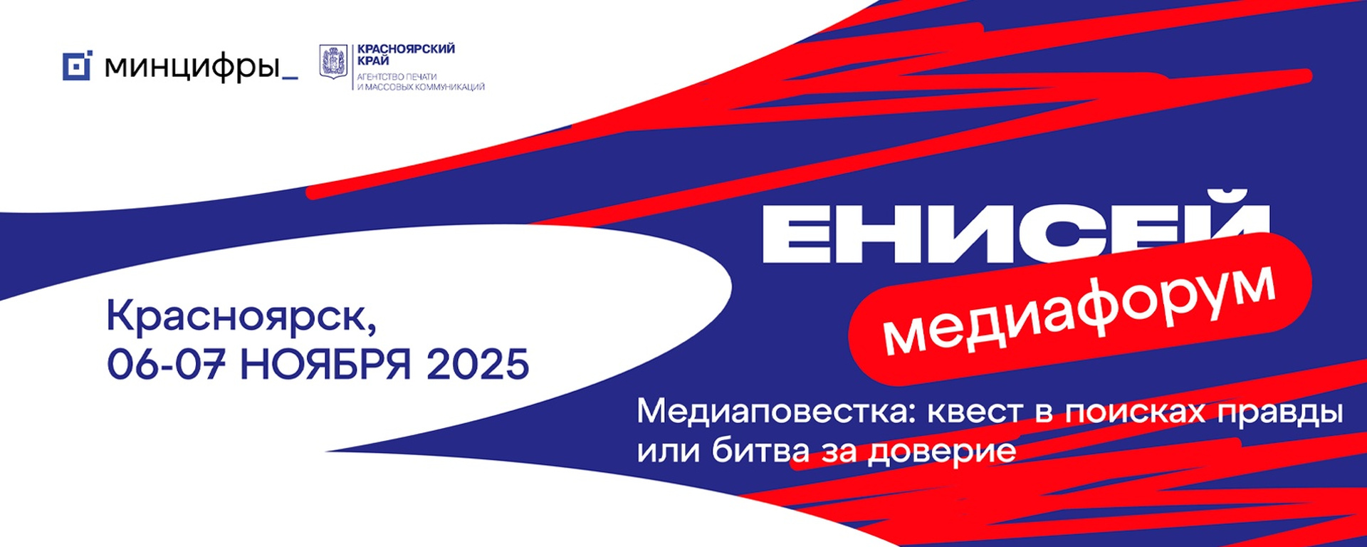 В Красноярске прошёл XIII межрегиональный форум СМИ «Енисей»*. Одно из ключевых профессиональных событий года открыл губернатор Красноярского края Михаил Котюков. Главной теме медиафорума – «Медиаповестка: квест в поисках правды или битва за доверие» были посвящены более 30 тематических дискуссионных площадок и мастер-классов. Они собрали первых лиц индустрии, органов власти, журналистов, блогеров и лидеров общественного мнения, определяющих главные направления развития медиасферы. Всего – более 60 спикеров (90% – представители федеральных СМИ). Отдельное внимание организаторы уделили вопросам регулирования медиарекламы, а также маркетинговым подходам в работе СМИ. Участниками этих мероприятий стали свыше 1700 человек из разных регионов России. Традиционным информационным партнёром форума выступило «Радио Сибирь». За два дня открытую студию радиостанции в конгресс-холле Сибирского федерального университета (СФУ) посетили 15 спикеров. Среди них: руководитель агентства печати и массовых коммуникаций Красноярского края и организатор медиафорума Ирина Брежнева, генеральный директор Национальной ассоциации телерадиовещателей (НАТ) Александр Широких, кандидат экономических наук, спикер корпоративной академии Роскосмос, эксперт по коммуникационным стратегиями в PR, эксперт по внедрению нейросетей в бизнес Михаил Неустроев, медиатренер, секретарь Союза журналистов России Юлия Загитова, писатель, консультант Константин Харский, автор и ведущий ТГ-канала «Пояснительная Бригада выехала», авторской передачи «Изолента Live» Трофим Татаренков, бизнес-тренер по PR и эффективным коммуникациям, писатель, издатель, председатель жюри всероссийского конкурса «Пресс-служба года» Тимур Асланов, секретарь Союза журналистов России, доцент факультета МГУ имени М.В. Ломоносова Роман Серебряный, журналист и ведущая программы «Вести» на телеканале «Россия-1», лауреат «ТЭФИ-Регион» Оксана Куваева.