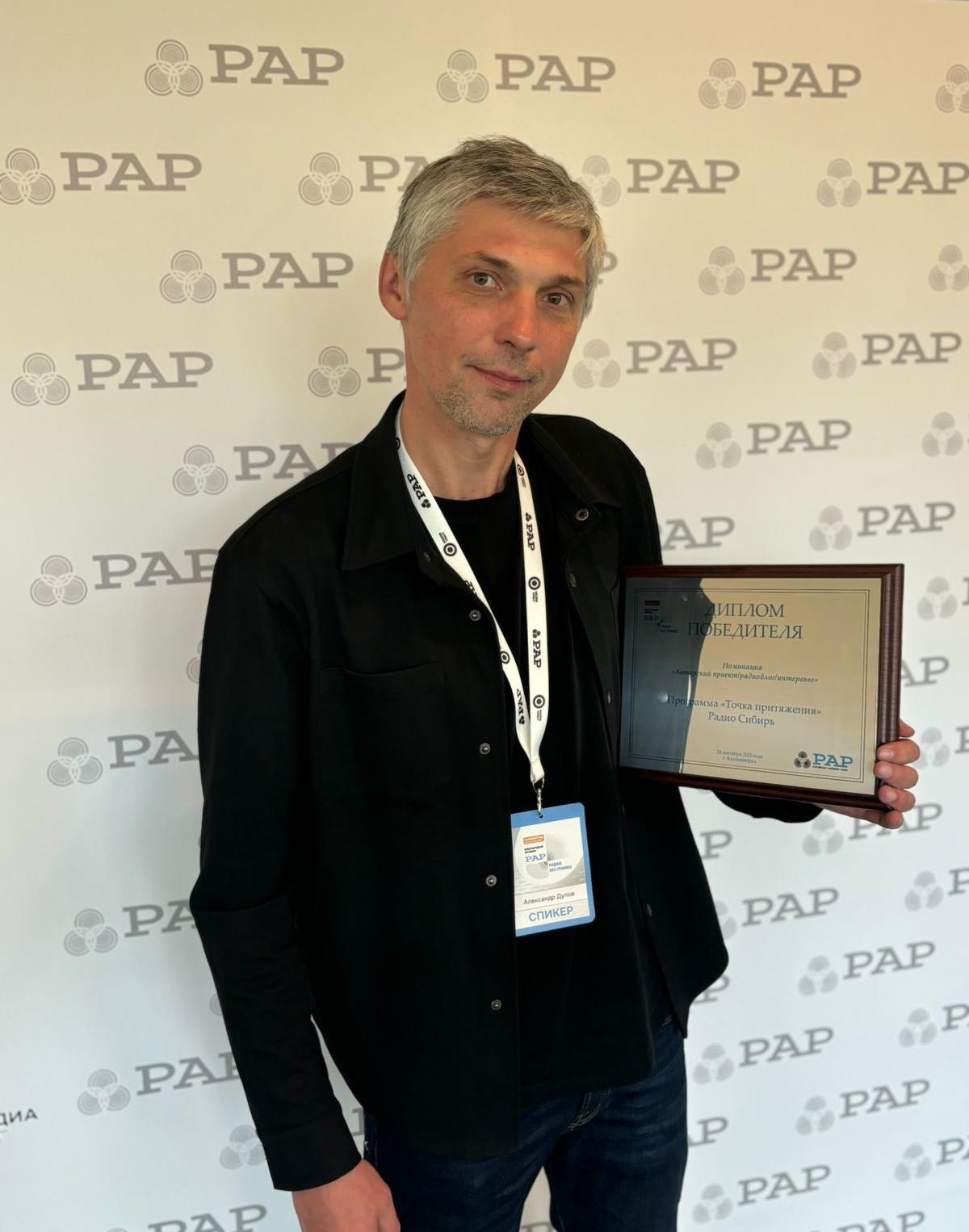 «Радио Сибирь» стало победителем конкурса радиопроектов IX Международного фестиваля «Радио без границ» в Калининграде. Жюри признало спецпроект «Точка притяжения» лучшим в номинации «Авторский проект/радиоблог/интервью по тематике Года защитника Отечества (80-летие Великой Победы)».